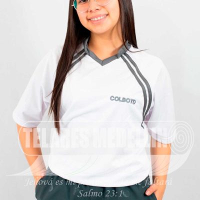 Es una tela 100% poliéster, la cual es usado para este tipo de prendas estudiantiles.